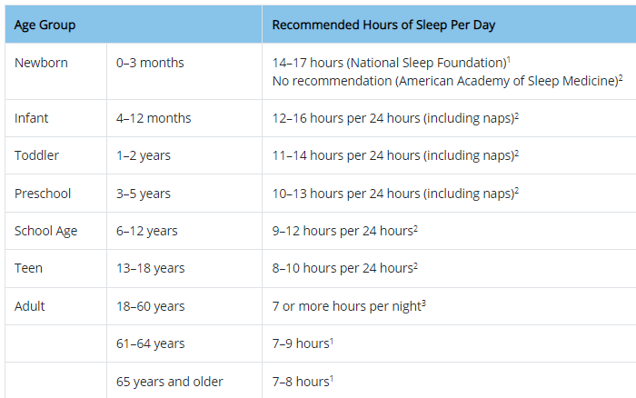Table Source: www.cdc.gov/sleep/about_sleep/how_much_sleep.html